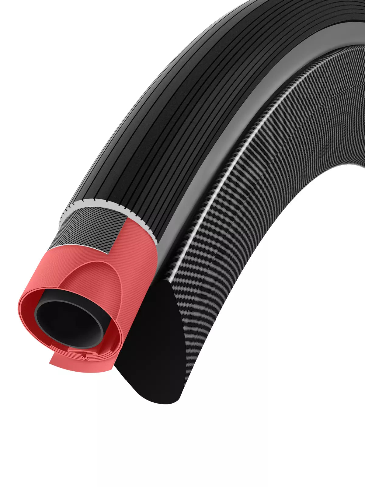 A carcaça produzida a partir de algodão, que proporciona leveza e conforto, e aramida, que traz durabilidade e resistência a furos. Pequenos impactos são suavizados, o ruído da estrada é silenciado, a resistência ao rolamento é reduzida e uma maior parte do pneu mantém contato com a estrada.